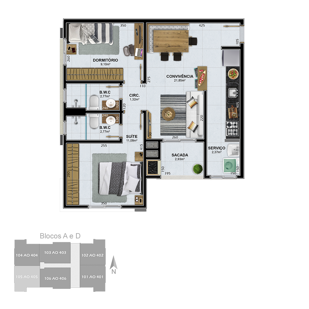 • Janelas dos dormitórios com persianas integradas